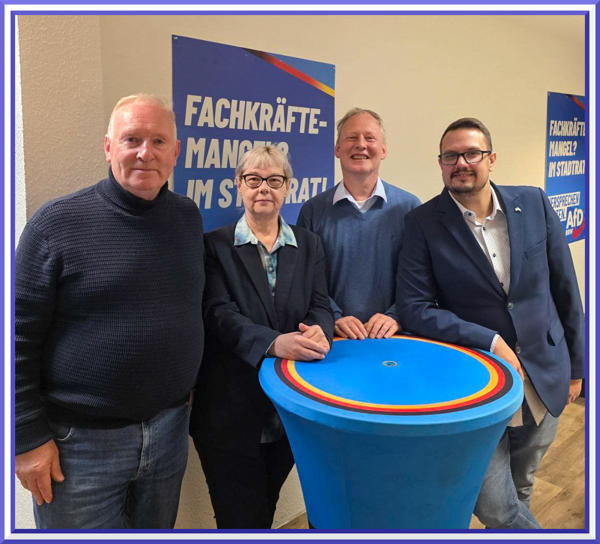 Bild 1: Die AfD-Bezirksvertretung Alt-Oberhausen mit Hartmut Mumm, Birgit Mumm, Wolfgang Kempkes und Kevin Burmeister (Fraktionsvorsitzender). Es fehlt T. Wolf.